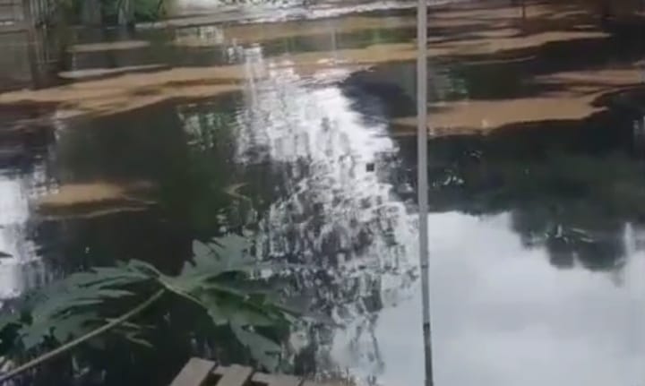 “Air yang menggenang di kawasan Olex, Cisereh, ini sekarang penuh sama oli. Ini berbahaya, sudah masuk ke rumah-rumah warga,” ucap pria tersebut.