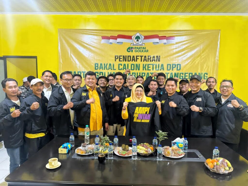 LensaPublik.co.id – Dewan Pimpinan Daerah (DPD) Angkatan Muda Pembaharuan Indonesia (AMPI), Kabupaten Tangerang mengantarkan Wakil Bupati Tangerang, Intan Nurul Hikmah mendaftarkan diri sebagai calon Ketua DPD Partai Golkar Kabupaten Tangerang periode 2025-2030.