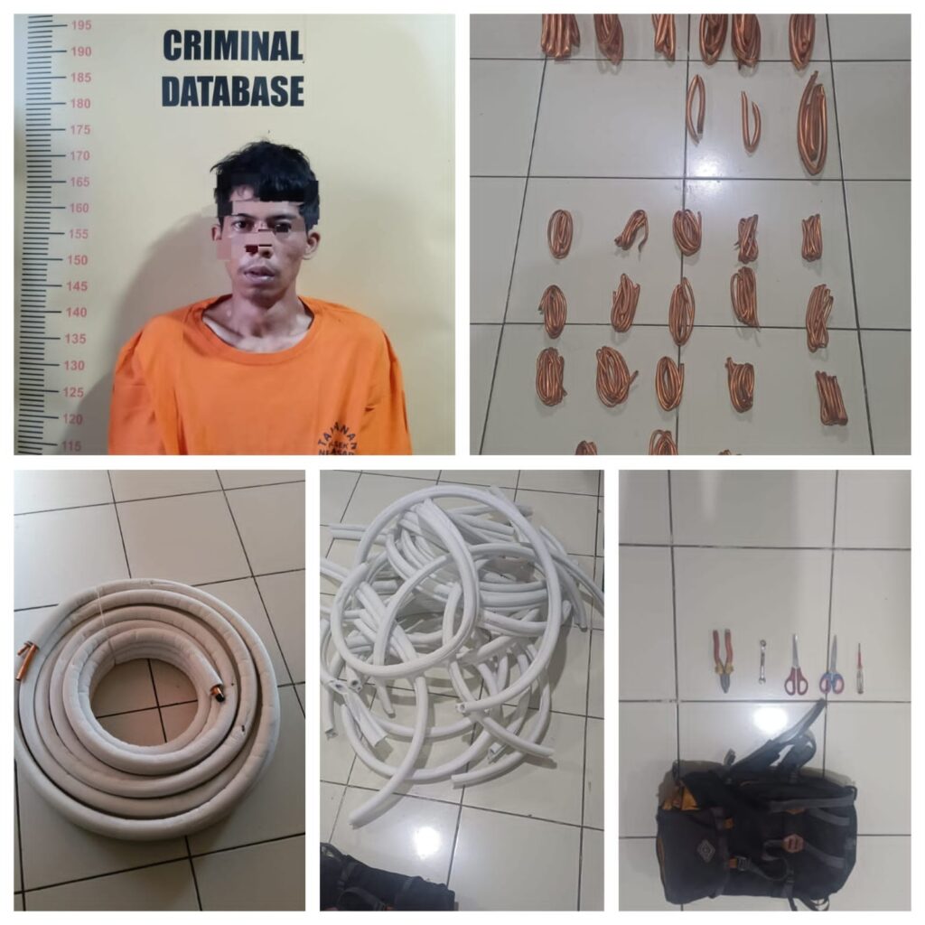 Setiba di lokasi, petugas mendapati seorang pria berinisial RJT (28), warga Selapajang Jaya. Dalam pemeriksaan awal, pelaku diduga mengakui telah mengambil sejumlah barang berupa komponen pipa tembaga AC dari dalam gudang.
